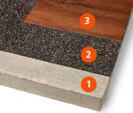 Regupol® SonusWave™ acoustic floor underlayment was specially engineered to be installed under lightweight concrete or topping, as well as plywood raft systems. This unique product is available in 6mm, 8mm, 10mm, 17mm, and 25mm thicknesses. When installing the Sonus Wave with hardwood the 6mm or 8mm thicknesses should be used to avoid a floating sensation. The Delta IIC improvement ranges from 18 to 26 decibels depending on floor/ceiling assembly and floor covering.
