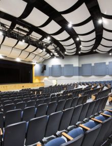 The scattering of sound and early reflections by curved shapes overhead improve musical clarity, volume, presence and intelligibility.