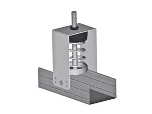 VIBRO-SH is an anti-vibration hanger for false ceilings. It consists of a metal frame of galvanized sheet, properly formed with lateral strength, steel spring, antivibration rubber element at the bottom of the spring which acts as a sound break and increase isolation efficiency.