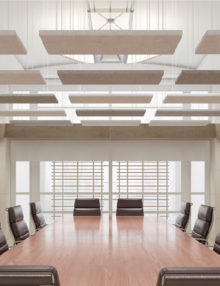 • Absorb hanging rafts are a high-quality Class A acoustic absorber. Rafts are excellent at battling reverberation and echo and should be suspended directly above the noise source for optimal performance. The Absorb panel core is an open-cell 65% recycled PET panel which is lightweight and easy to suspend, finished in a wide range of industry-leading Camira fabrics or used in its raw material for a cost-effective solution.